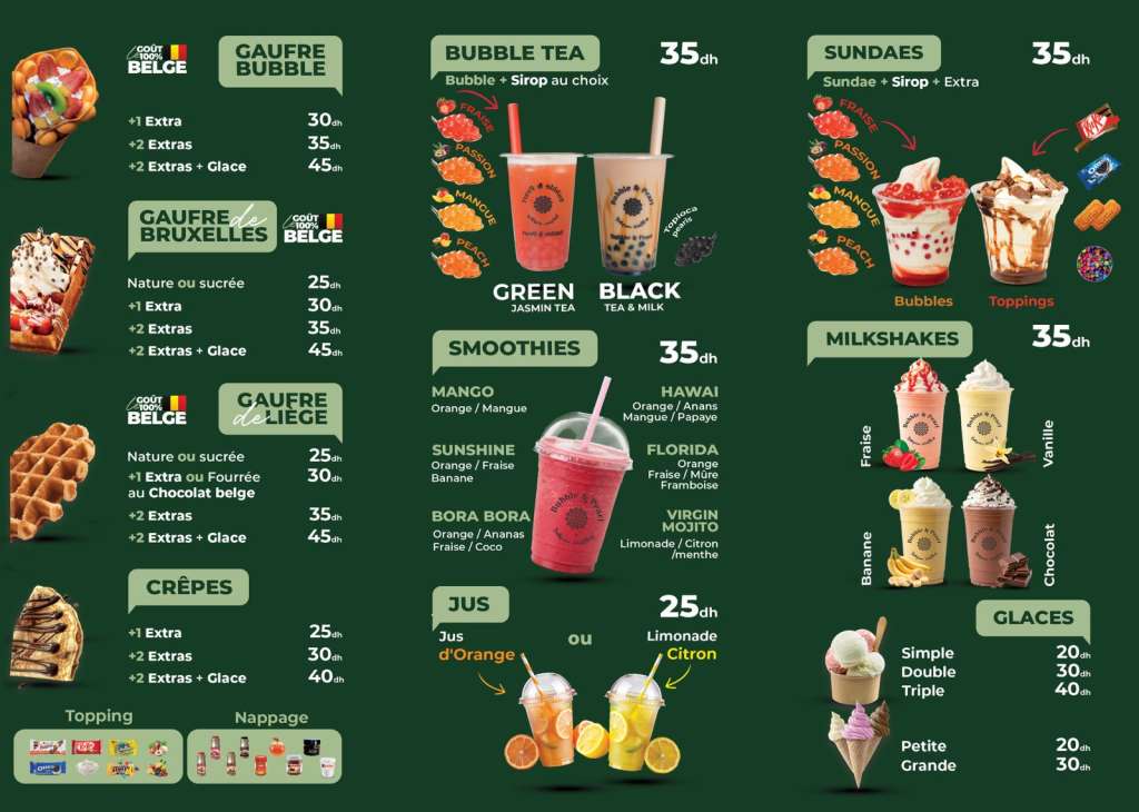 Bubble & Pearl prépare chaque jour de délicieuses gaufres à partir de produits frais, avec une généreuse dose d’amour et de savoir-faire. Chaque bouchée est pensée pour vous offrir un moment de plaisir authentique.